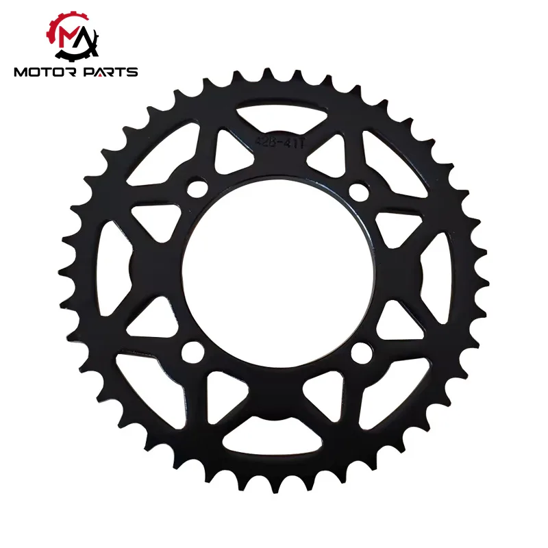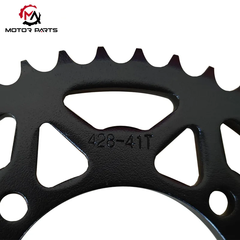 În calitate de fabrică profesionistă de pinioane pentru motociclete, folosim oțel aliat de înaltă rezistență și utilizăm formarea de precizie CNC și un proces de tratament termic în două etape (călire și revenire) pentru a ne asigura că suprafața dintelui are o duritate suficientă, în timp ce componentele de bază ale pinioanelor pentru motociclete 428-41T mențin o rezistență puternică la impact. Specificația de 41 de dinți este optimizată atât pentru răspunsul la accelerare, cât și pentru economia de combustibil.