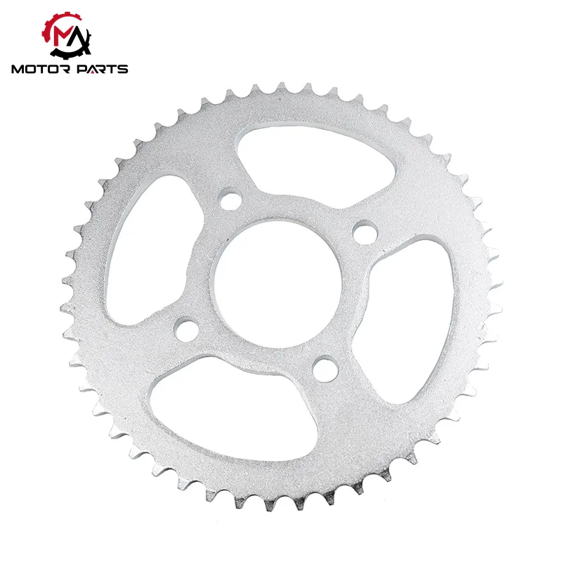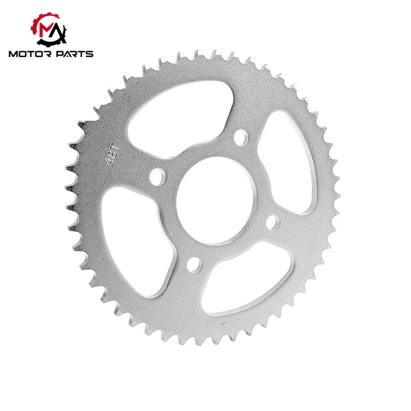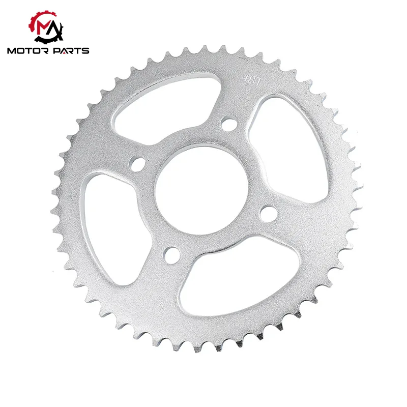 Pinionul motocicletei 428-48T este fabricat din oțel carbon mediu 45, un material cu conținut echilibrat de carbon care evită fragilitatea oțelului cu conținut ridicat de carbon și rezistența insuficientă a oțelului cu conținut scăzut de carbon. Acest material are o anumită rezistență de bază fără tratament termic, îndeplinind cerințele de bază ale transmisiei puterii, iar proprietățile sale mecanice sunt îmbunătățite semnificativ după tratamentul termic profesional.
