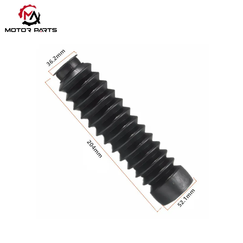 Capacul de praf al amortizorului din față al motocicletei este fabricat din materiale foarte elastice și moi, care pot amortiza eficient vibrațiile subtile generate de extinderea și contracția amortizorului, reducând în același timp semnificativ zgomotul cauzat de vibrații, îmbunătățind în același timp confortul de rulare; Unele produse sunt special concepute cu structuri îngroșate, care cresc greutatea cu 30% față de modelele obișnuite. Ele pot rezista puternic la impacturi externe, cum ar fi mici impacturi cu pietre și zgârieturi de ramuri de copac, oferind o protecție completă pentru amortizoare.