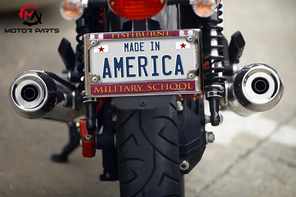 Cadrul pentru plăcuțe de înmatriculare pentru motociclete ABS standard din SUA produs de Max Trading urmează cu strictețe „Specificația de instalare a plăcuțelor de înmatriculare a autovehiculelor”, cu o marjă de cel puțin 5 mm rezervată la margine, fără a obstrucționa zona de număr a plăcuței de înmatriculare. Adoptă o structură de blocare cu șuruburi în patru puncte și este potrivit pentru 99% dintre pedale, tramvaie și modele retro. În același timp, cadrul plăcuței de înmatriculare a motocicletei Max Trading poate fi echipat cu un design de interfață cu fantă de lumină LED și un sistem inteligent de iluminat auxiliar pe timp de noapte, care se potrivește cu exactitate nevoilor personalizate ale pieței de modificare a motocicletelor de ultimă generație.