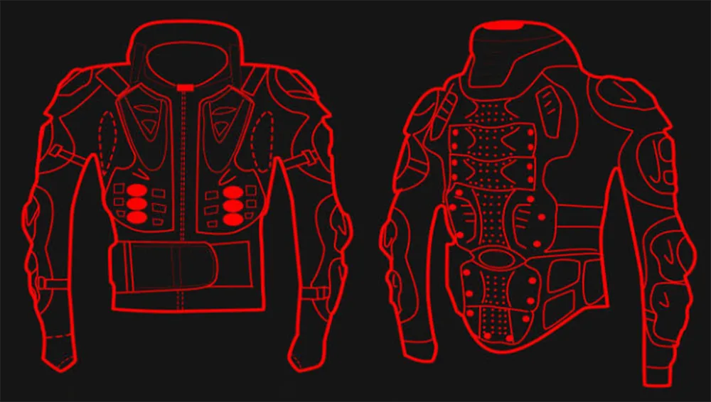 Compozite de înaltă rezistență: armura superioară pentru motociclete, proiectată pentru a rezista la impacturi de mare viteză. Absorbție de energie în fagure: o structură internă specializată concepută pentru a dispersa energia cinetică pe suprafață, reducând la minimum traumatismele localizate. Protecție cu acoperire completă: protecție strategică pentru umeri, coate, piept și spate.