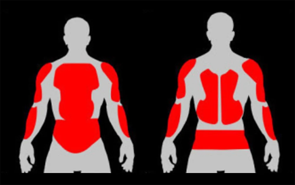 Armura superioară pentru motociclete Echipată cu interfețe cu fermoar fără sudură pentru a se conecta direct cu îmbrăcămintea de ciclism pentru un sistem de protecție unificat. Plăcile articulare sunt aliniate anatomic pentru a se potrivi cu zonele de protecție ale mănușilor și pantalonilor de călărie.