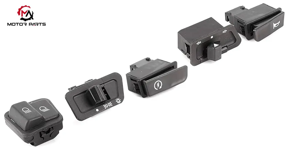 The motorcycle switch button, as a key component of human-computer interaction, is mainly made of plastic material and partially covered with rubber anti-skid layer on the surface. Its core function is to accurately respond to the rider's control instructions and ensure the stable operation of various systems of the vehicle.