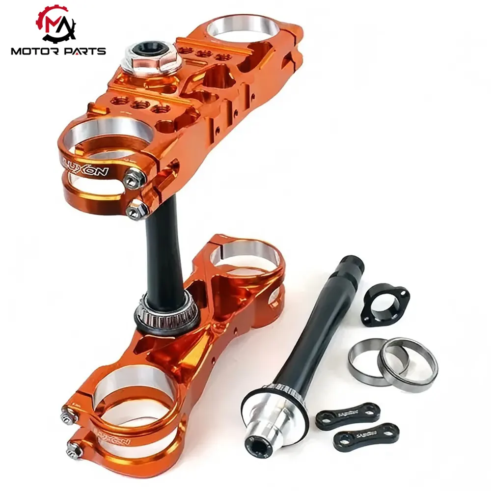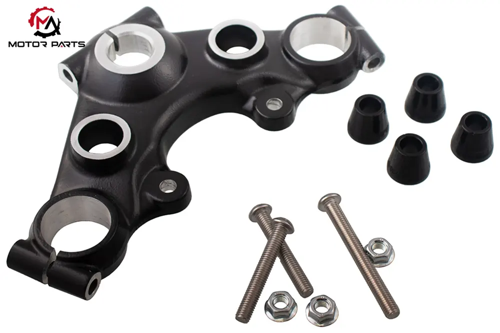 There are two front fork mounting holes at the bottom of the upper board (with a spacing matching the diameter of the front fork). The top of the front fork is fixed with high-strength bolts (torque value 25-35N · m) to ensure that the left and right front forks are parallel and perpendicular to the ground (installation error ≤ 0.3 °). Some high-end car models (such as sports streetcars and race cars) have an integrated front fork preload adjustment knob installation position on the upper board, which can directly adjust the pre tension of the front fork spring through the motorcycle upper board, adapting to different load or road conditions without disassembling other components, improving maintenance convenience.